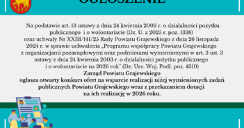 Starostwo Powiatowe w Grajewie informuje, iż zgodnie z ustawą z dnia 5 sierpnia 2015 r. o nieodpłatnej pomocy prawnej,…