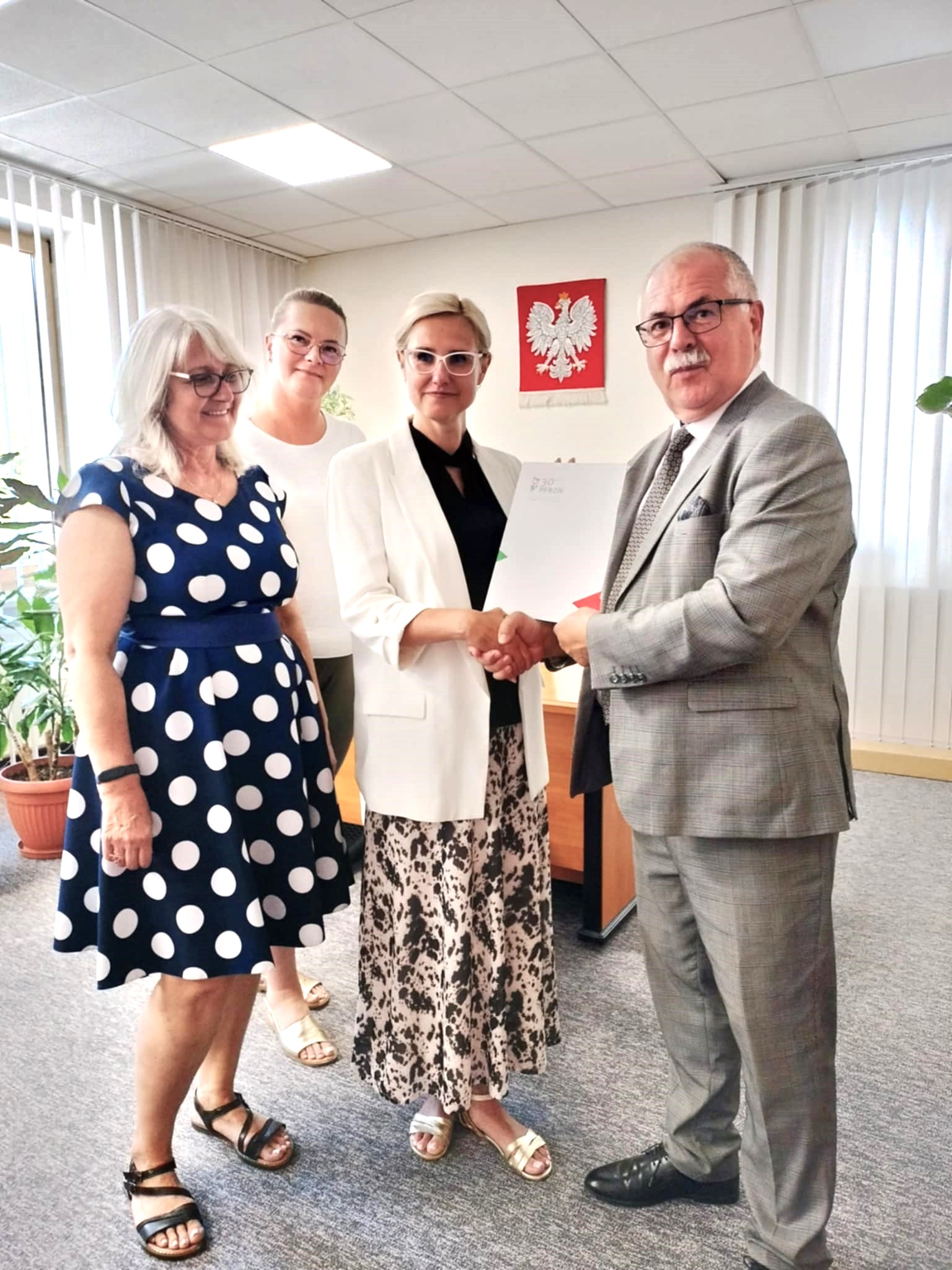 W dniu 14 sierpnia 2025 r. przedstawiciele Powiatu Grajewskiego: Starosta Grajewski Waldemar Remfeld, Wicestarosta Grajewski Maria Gwiazdowska oraz Skarbnik Powiatu Grajewskiego Joanna Andruk, spotkali się z p.o. Dyrektora Oddziału Podlaskiego Państwowego Funduszu Rehabilitacji Osób Niepełnosprawnych w Białymstoku – Urszulą Kierznowską.