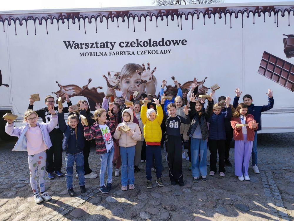 W poniedziałek (30 marca br.) od wczesnych godzin porannych w Szkole Podstawowej im. Zesłańców Sybiru w Niedźwiadnej gościł prawdziwy czekoladowy gigant! Mobilna Fabryka Czekolady prosto z naczepy tira zamieniła się w pachnące kakao laboratorium mistrzów słodkości. W warsztatach wzięli udział uczniowie tej szkoły, a także uczniowie z Zespołu Szkolno – Przedszkolnego w Radziłowie oraz Zespołu Szkół w Niećkowie. Dołączyli też do nas uczniowie z rodzicami ze Szkoły Podstawowej w Szczuczynie.