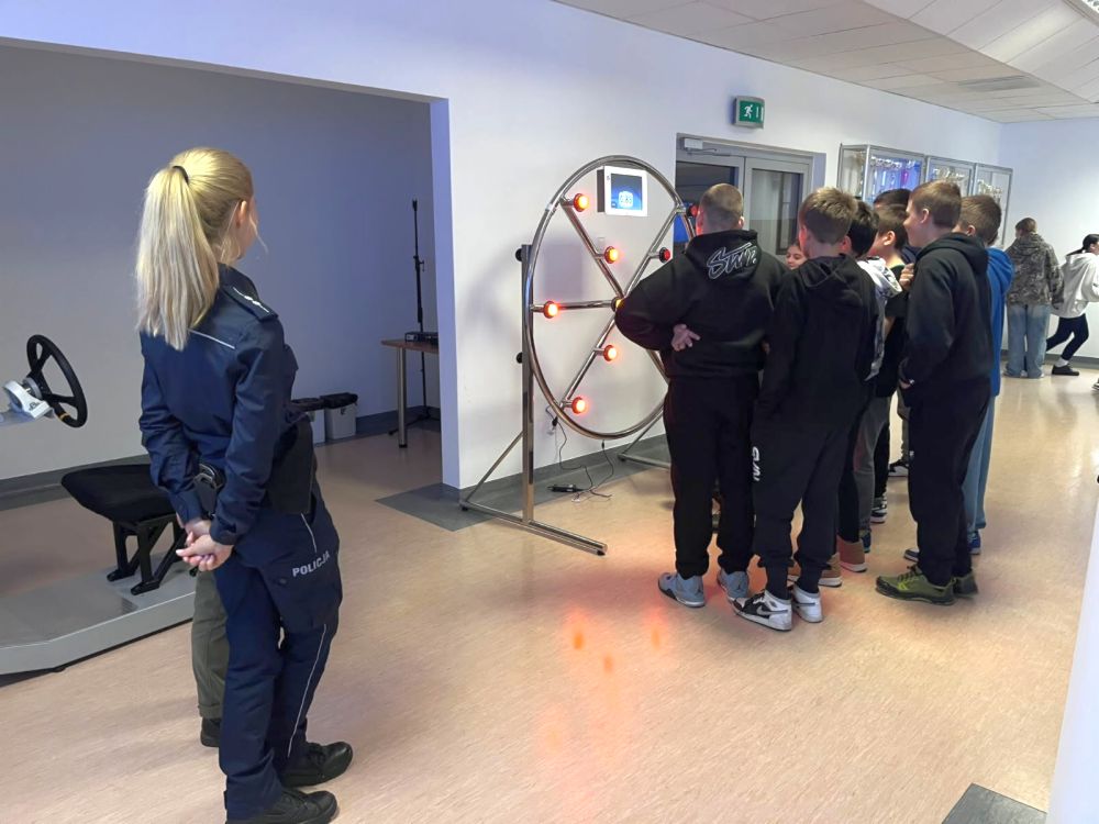 z uczniami Zespołu Szkół nr 2 w Grajewie oraz ZS „Strzelec”. Podczas wizyty młodzież miała możliwość poznać zasady działania przekazanego sprzętu oraz porozmawiać o bezpieczeństwie w ruchu drogowym.