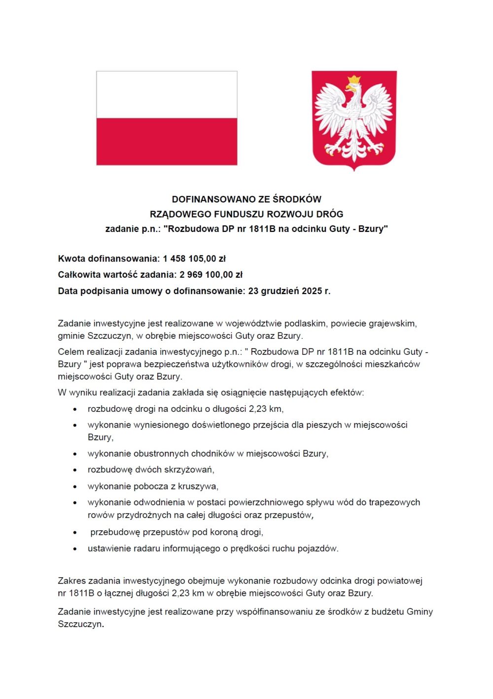 „Rozbudowa DP nr 1811B na odcinku Guty – Bzury”.