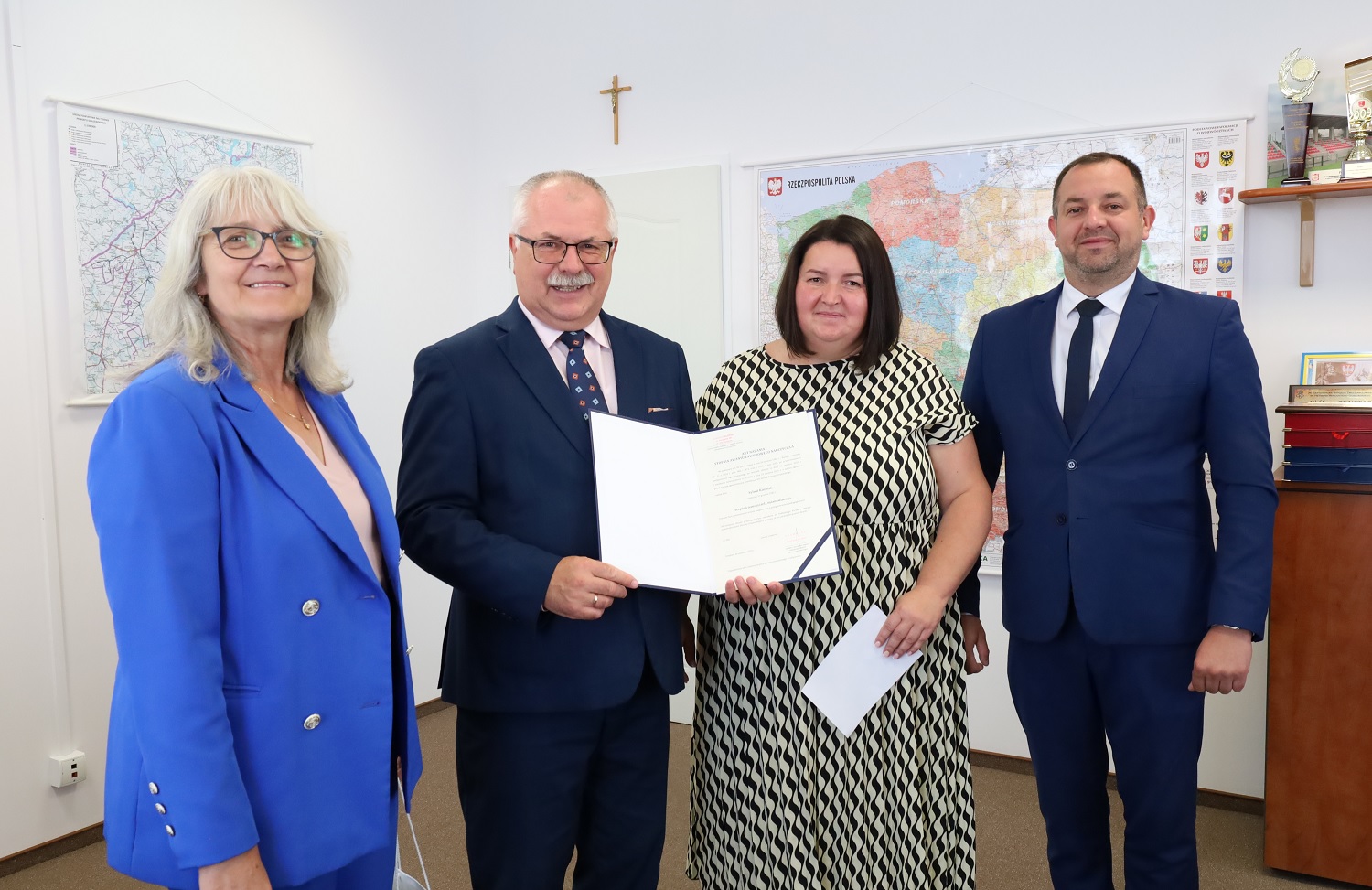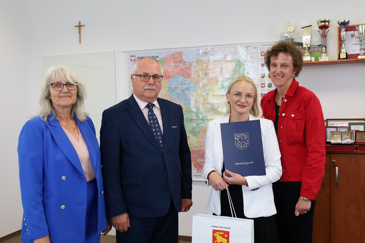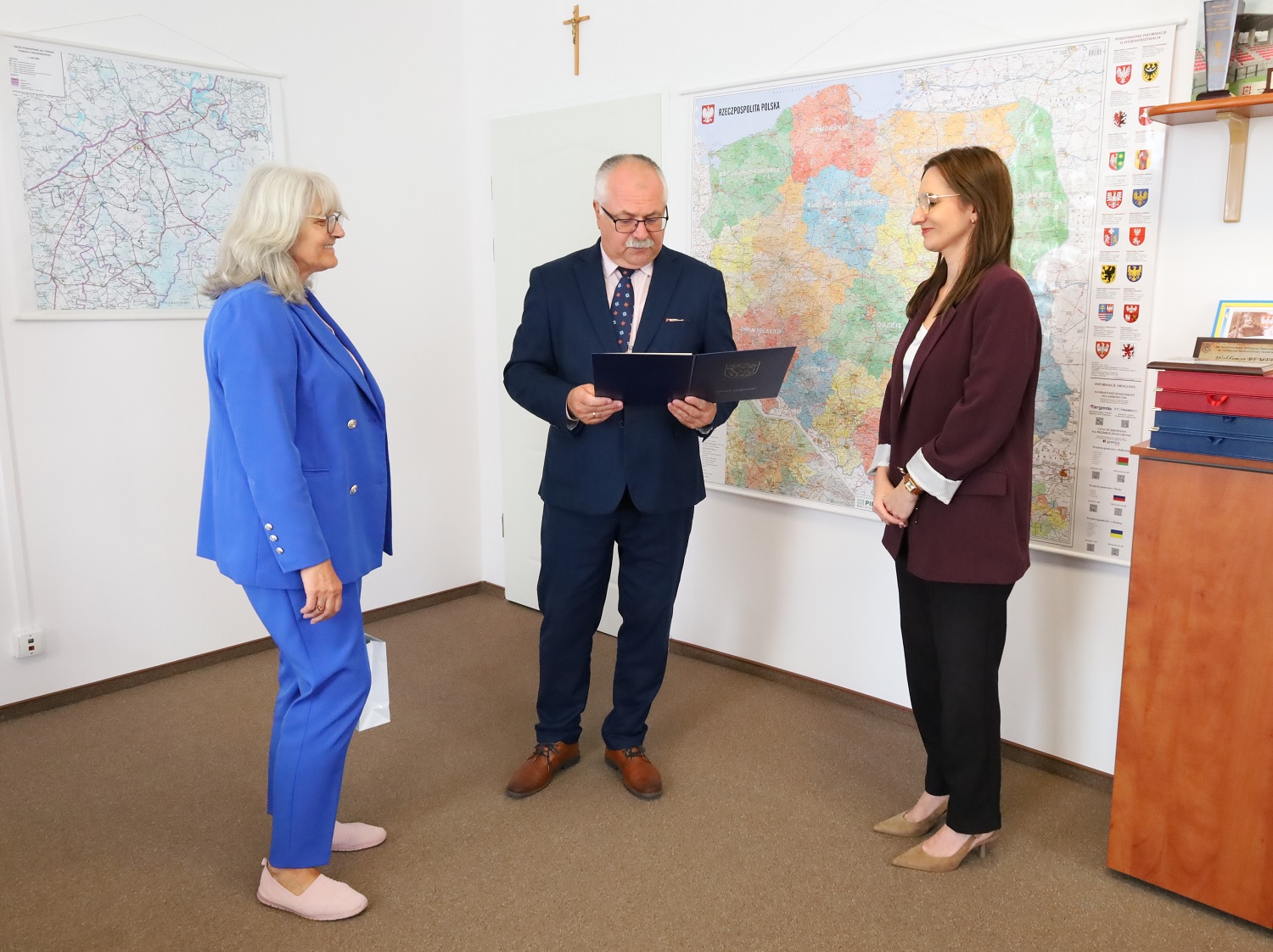 Tego samego dnia, 26 sierpnia 2025 r., przedstawiciele Powiatu złożyli gratulacje Urszuli Puchalskiej, której uchwałą Zarządu Powiatu Grajewskiego powierzono stanowisko Dyrektora Zespołu Szkół Specjalnych im. Jana Pawła II w Grajewie.