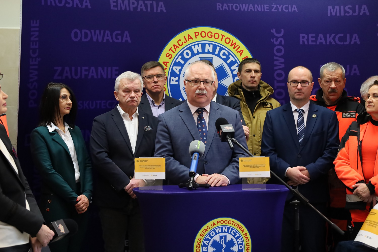 Dzisiaj, 16 stycznia 2026 r., w siedzibie Wojewódzkiej Stacji Pogotowia Ratunkowego SP ZOZ w Łomży, Filii w Grajewie, odbyła się konferencja prasowa dotycząca sprzętu zakupionego w ramach Programu Ochrony Ludności i Ochrony Cywilnej, finansowanego z budżetu Województwa Podlaskiego.