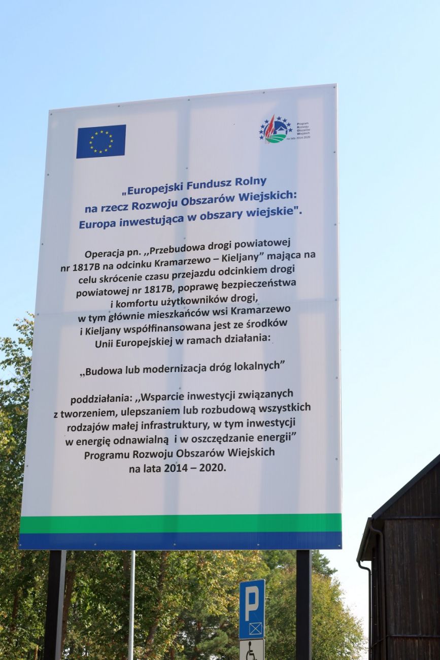 Celem zadania było skrócenie czasu przejazdu odcinkiem drogi powiatowej nr 1817B oraz poprawa bezpieczeństwa i komfortu użytkowników drogi, w szczególności mieszkańców wsi Kramarzewo i Kieljany.