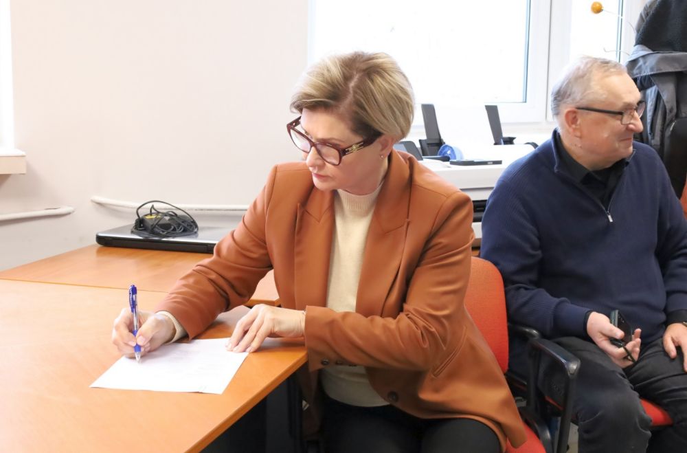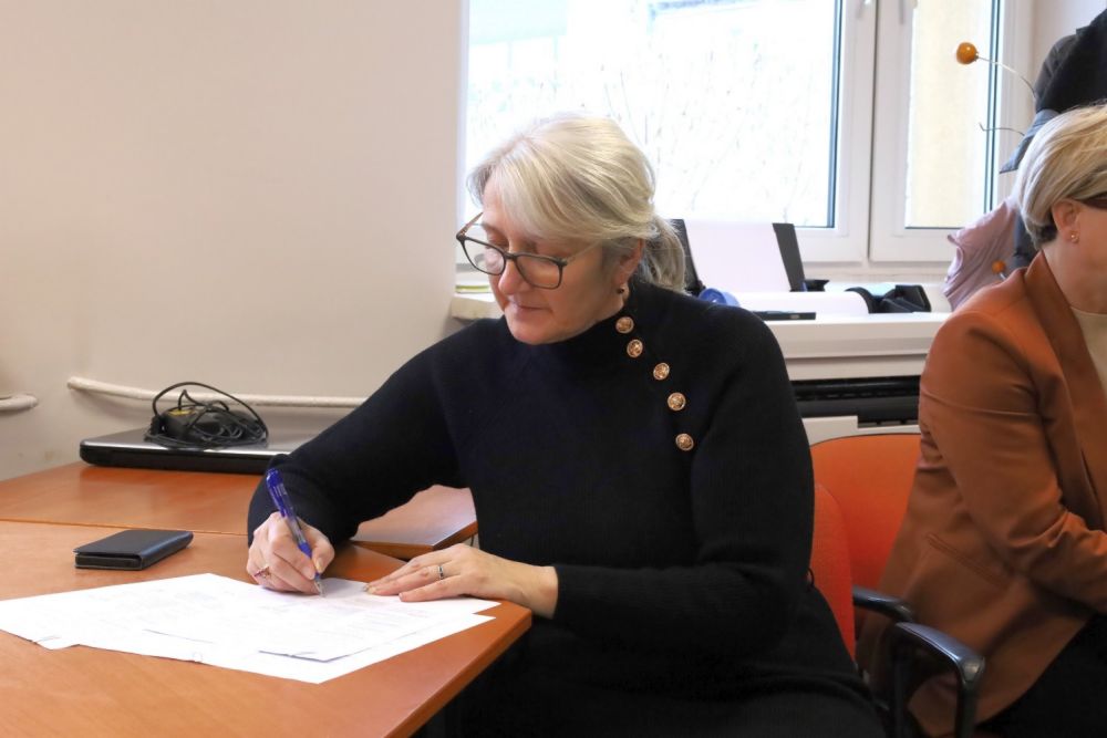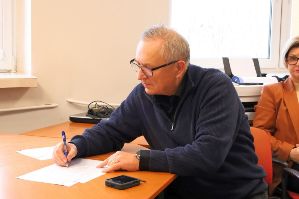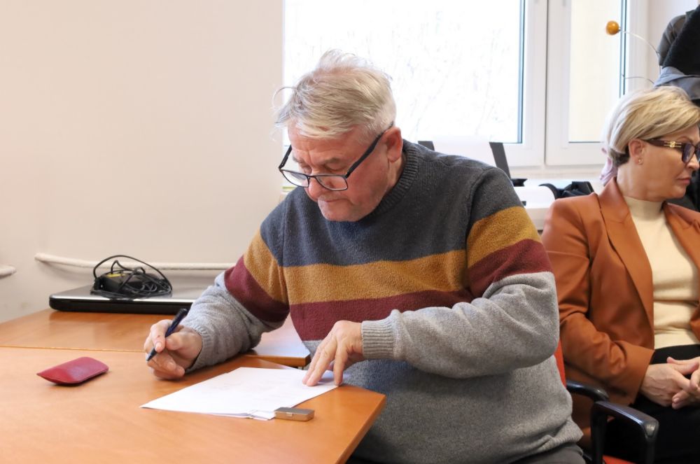 Spotkanie związane z podpisaniem protokołu odbioru końcowego robót wykonanych w ramach zadania odbyło się w siedzibie Zarządu Dróg Powiatowych w Grajewie. Uczestniczyli w nim m.in. przedstawiciele Powiatu Grajewskiego: Starosta Waldemar Remfeld, Wicestarosta Maria Gwiazdowska oraz p.o. Dyrektora Zarządu Dróg Powiatowych Barbara Szuba, a także przedstawiciele wykonawcy – Przedsiębiorstwa Handlowo-Usługowego „UNIROL” w Grajewie Sp. z o.o.: Prezes Przedsiębiorstwa Dorota Kulikowska, Kierownik budowy Krystyna Czaplicka oraz pozostali kierownicy robót i inspektorzy nadzoru poszczególnych branż.