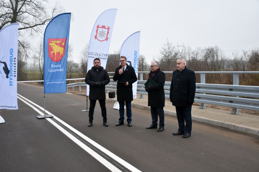 Uroczystość otwarcia mostu rozpoczęła się w miejscu inwestycji, gdzie zebrali się wszyscy zaproszeni goście. Krótkie powitanie oraz zarys przedsięwzięcia przedstawili: Waldemar Remfeld – Starosta Grajewski oraz Marcin Wileński – Burmistrz Szczuczyna, gospodarze wydarzenia. Głos zabrał również Wicewojewoda Podlaski – Paweł Krutul oraz poseł Kazimierz Gwiazdowski, którzy podkreślili istotę pozyskiwania środków finansowych na realne wsparcie, realnych potrzeb mieszkańców.