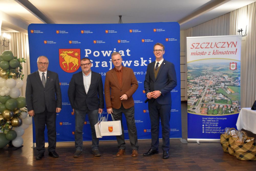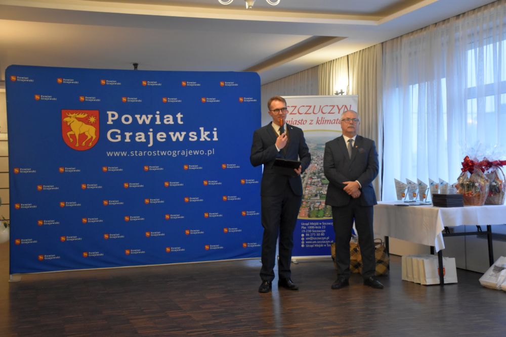 Druga część wydarzenia odbyła się w Restauracji „Biesiadna”, gdzie kontynuowano uroczystość w nieco przyjaźniejszych warunkach atmosferycznych. Na początku Burmistrz Szczuczyna wraz ze Starostą Grajewskim omówili istniejący od lat problem z użytkowaniem mostu w sołectwie Skaje, m. Blacer oraz zobrazowali długą drogę jaką przebyli, by ostatecznie otrzymać dofinansowanie i zrealizować inwestycję. Gospodarze wręczyli również podziękowania wszystkim zaangażowanym w powstanie mostu i wyrazili deklarację na dalszą współpracę i realizację kolejnych wspólnych inwestycji.