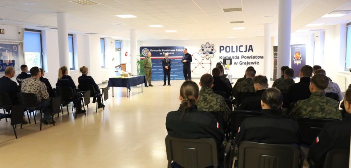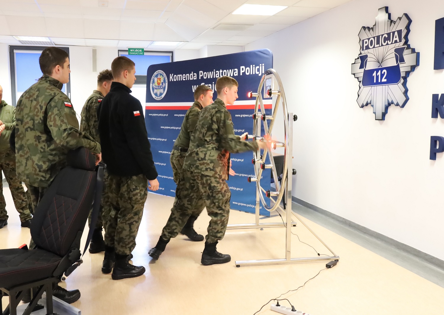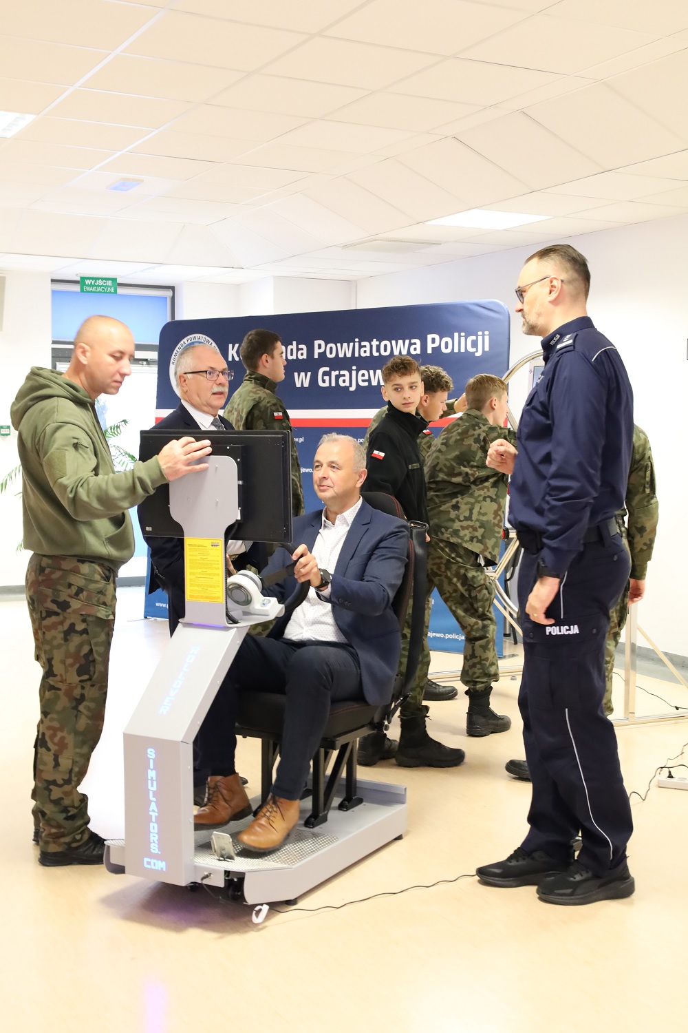 W spotkaniu poza funkcjonariuszami Policji udział wzięli też uczniowie klasy mundurowej Zespołu Szkół Nr 2 im. 9 Pułku Strzelców Konnych w Grajewie, którzy mieli okazję, jako pierwsi skorzystać i przetestować działanie sprzętu.