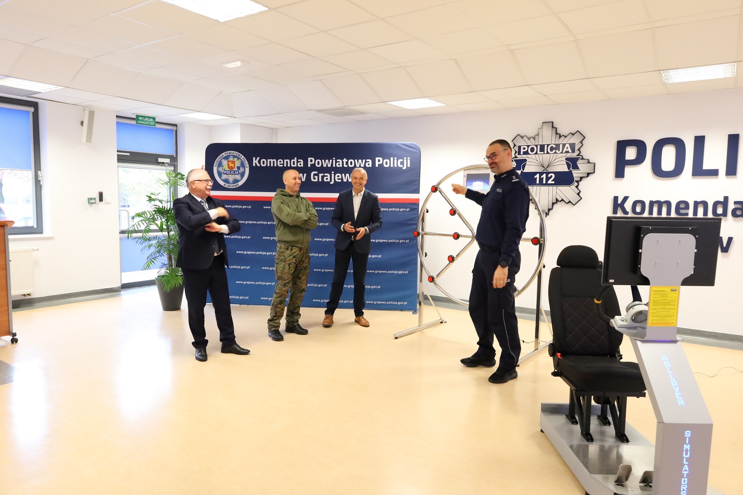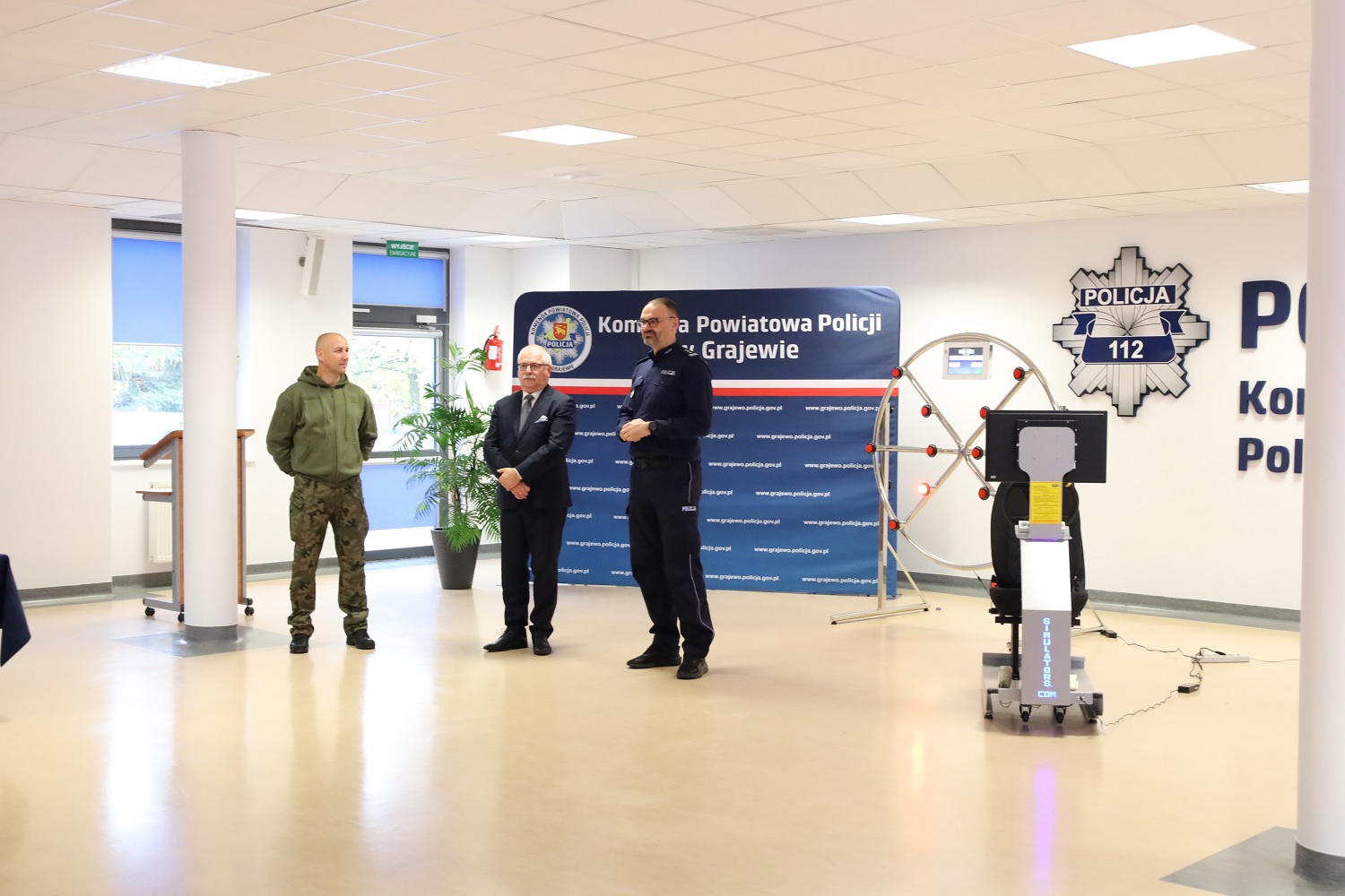 Jednym z elementów projektu był zakup sprzętu, który dzisiaj – 4 listopada 2025 r. – został przekazany Komendzie Powiatowej Policji w Grajewie. Wśród zakupionych rzeczy znalazły się: