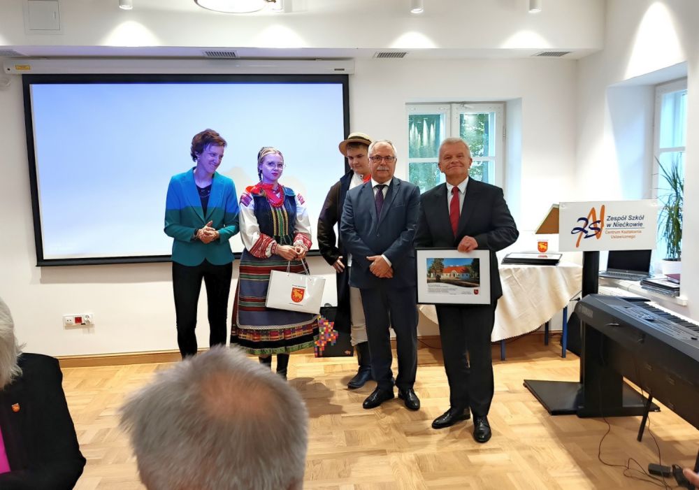 Podziękowania wręczali Dyrektor Zespołu Szkół im. B. Podedwornego w Niećkowie Bożena Sokołowska oraz Starosta Grajewski. Wśród nagrodzonych znaleźli się m.in.: członek Zarządu Województwa Podlaskiego Jacek Piorunek, właściciel Firmy Handlowo-Usługowej „Mag-Bud” Piotr Lipski, Naczelnik Wydziału Inwestycji i Pozyskiwania Środków Małgorzata Cybula, były dyrektor szkoły Dariusz Koniecko – od którego rozpoczęła się modernizacja zabytku, właścicielka P.H.U. „Raj” Ewa Radzio, inspektorzy branż nadzorujących prace: Andrzej Urbanowicz, Rafał Stankiewicz i Bogdan Truszkowski, właściciel restauracji Stolica Cafe Bogdan Gałązka, a także nauczycielki ZS w Niećkowie – Katarzyna Duda i Beata Zielińska – które wraz z uczniami przygotowały przepyszny poczęstunek. Starosta podziękował również Dyrektor Bożenie Sokołowskiej za współpracę i pomoc, na którą zawsze można liczyć.