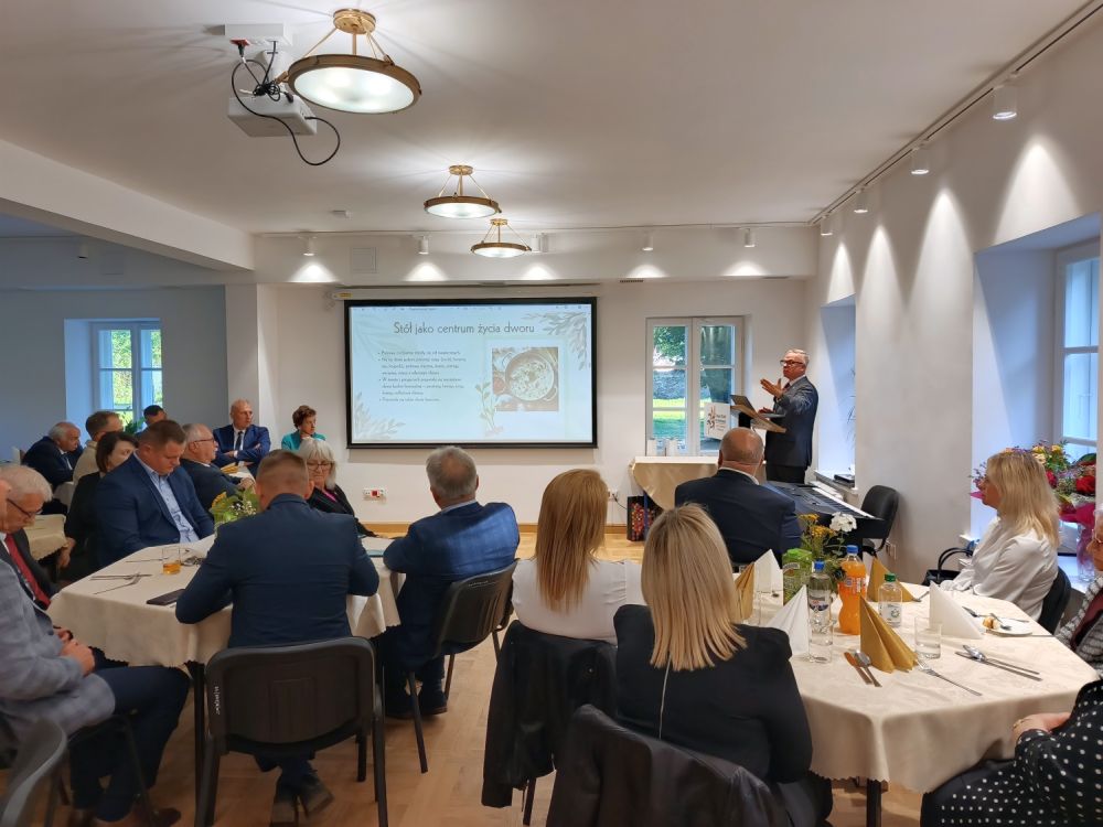 Przed poczęstunkiem, aby podkreślić smaki staropolskiej kuchni dworskiej, swoją prelekcję na temat dawnych tradycji kulinarnych wygłosił wybitny restaurator Bogdan Gałązka.