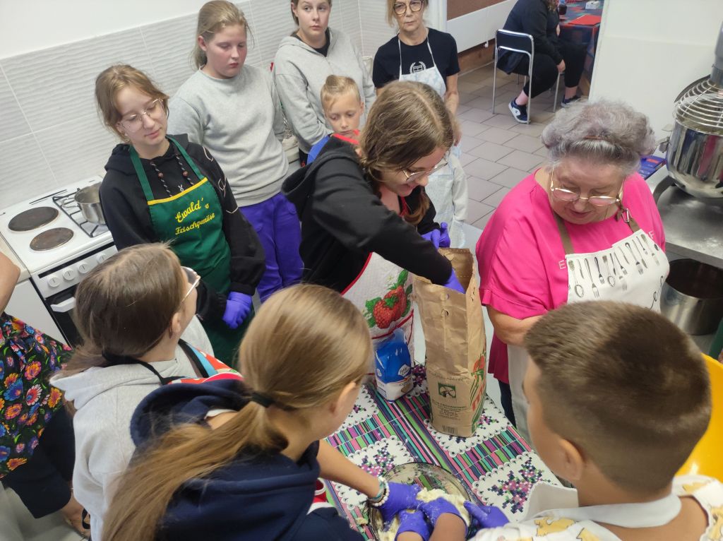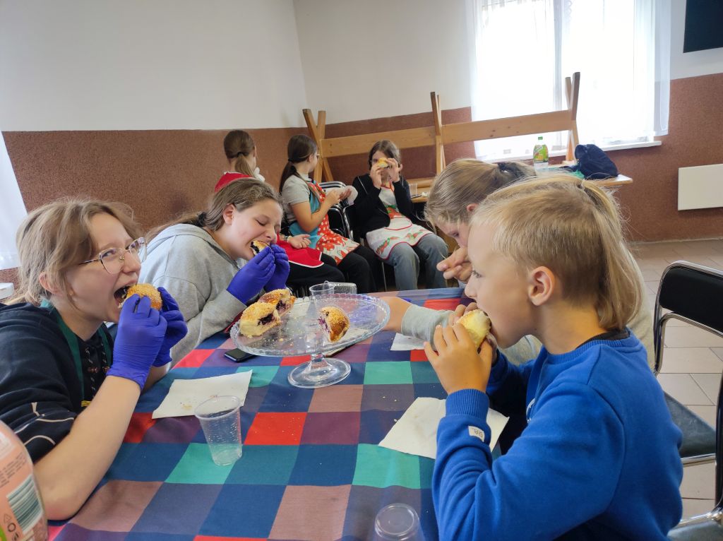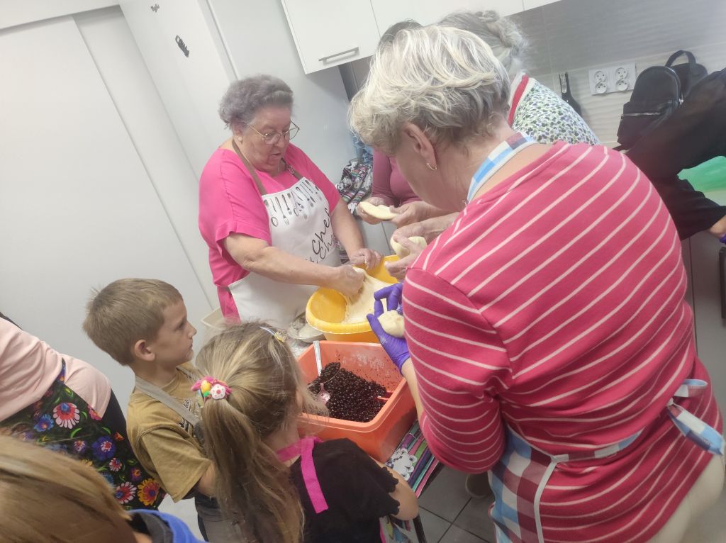 o rodzinnych przepisach przekazywanych z pokolenia na pokolenie. Zwieńczeniem warsztatów była degustacja – pachnące, ciepłe jagodzianki smakowały jak za dawnych lat i przywoływały wspomnienia z dzieciństwa.