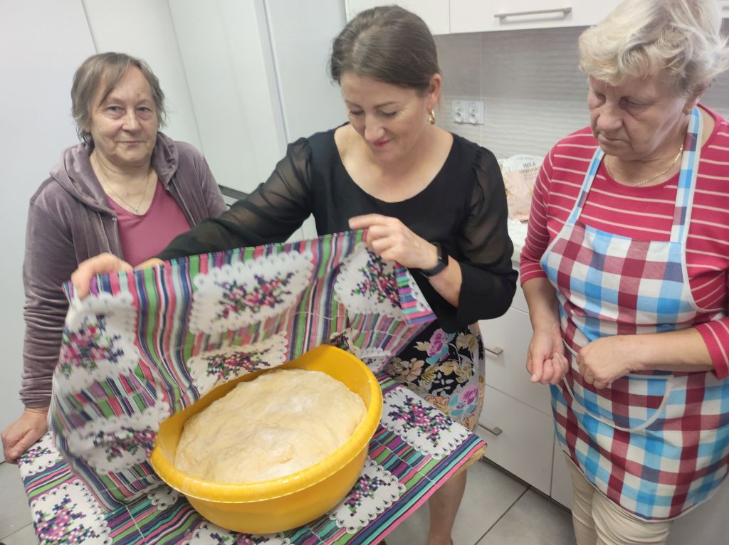 Spotkanie rozpoczęło się od krótkiej opowieści o historii tego popularnego wypieku oraz praktycznych wskazówek dotyczących idealnego ciasta drożdżowego. Następnie uczestnicy, pod czujnym okiem gospodyń z KGW „Niedźwiadnianki”, samodzielnie wyrabiali ciasto, przygotowywali nadzienie i formowali bułeczki.