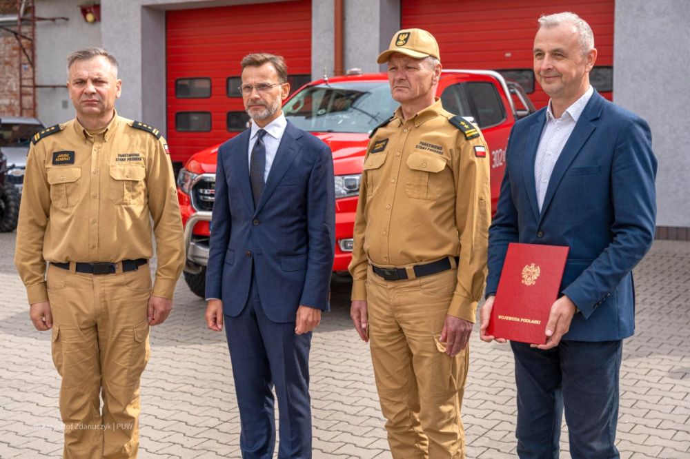 W dniu 15 września 2025 r. w Komendzie Wojewódzkiej Państwowej Straży Pożarnej w Białymstoku odbyło się uroczyste wręczenie umów w ramach Programu Ochrony Ludności i Obrony Cywilnej na lata 2025 – 2026. Posłużą one przede wszystkim zaspokojeniu potrzeb krajowego systemu ratownictwa gaśniczego. To ogromne wsparcie dla podlaskich jednostek Państwowej Straży Pożarnej.